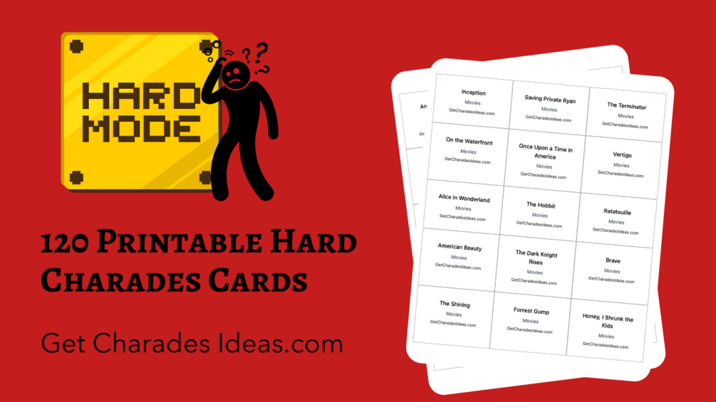 120 Hard Cards for Charades